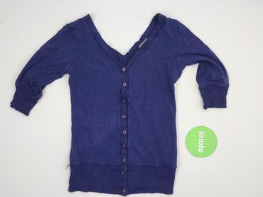 Damski kardigan/rozpinany sweter bez zapięcia - Kolor: ciemnogranatowy - Rozmiar: S (etykieta “WOMEN S”) - Krój: otwarty, bez guzików/suwaka; lekko asymetryczny przód, wydłużony dół - Rękawy: dług...