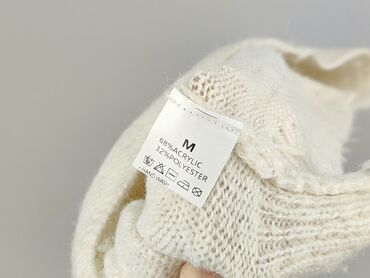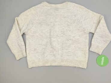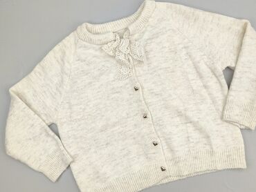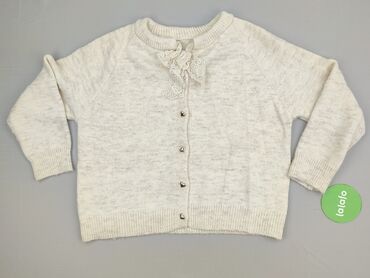 Kardigan damski w kolorze kremowym, wykonany z dzianiny. Charakteryzuje się dekoltem w kształcie litery V i zapięciem na guziki. Sweter posiada długie rękawy z ażurowymi wzorami, które nadają mu le...Stan:
