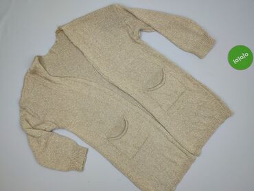 Kardigan damski M/L – brązowo‑złoty, połyskujący - Luźny, otwarty krój z miękką, opadającą klapą z przodu - Rękawy 3/4 - Delikatna, drobna prążkowana faktura z metaliczną nitką dającą subtelny bły...