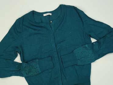 Ażurowy kardigan damski Orsay - Kolor: butelkowa zieleń/melanż - Fason: dopasowany, wydłużony do bioder - Zapięcie: 5 guzików z przodu (okrągłe, w kolorze swetra z metaliczną obwódką) - Dekolt: gł...
