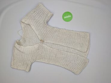 Damski ażurowy kardigan/sweter z krótkim rękawem - Kolor: jasny beż/kość słoniowa - Krój: prosty, lekko luźny, długość do bioder - Zapięcie: na guziki z przodu (5 szt.) - Dekolt: okrągły - Rękaw: ...