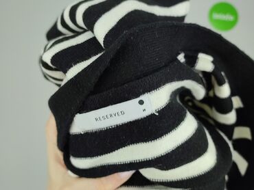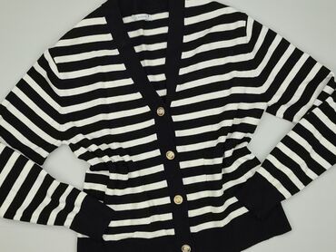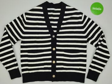 Dzianinowy kardigan w paski S/M - Kolor: czarno‑białe, drobne poziome paski - Krój: dopasowany, z szerokim, zaokrąglonym dekoltem - Rękaw: 3/4 z czarnymi, prążkowanymi ściągaczami - Zapięcie: na c...