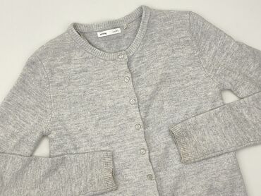 Kardigan damski Sinsay, rozmiar S - Klasyczny kardigan bez zapięcia, z szeroką listwą z przodu - Kolor: jasnoszary melanż - Dwie naszywane kieszenie z przodu - Ściągacze przy dole i mankietach - S...Stan: