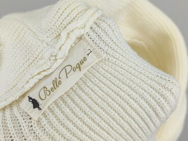 Sweter damski Belle Poque - Fason: dopasowany w talii, rozkloszowany dół (peplum) podkreślający sylwetkę - Zapięcie: 4 guziki z przodu - Kołnierz: szeroki, miękko układający się szalowy kołnierz -...Stan: