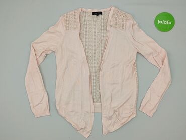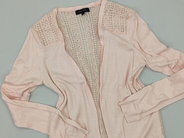 Ażurowy kardigan M&Co - Rozmiar: L (na metce) - Kolor: pudrowy róż z jasnoróżową/śmietankową koronkową lamówką - Fason: lekko taliowany, bez zapięcia, dekolt w serek - Rękawy: długie, zakończone f...
