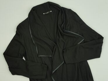 Damska bluzka/sweterkopodobny kardigan z dzianiny, czarno‑biały w drobne kropki. - Fason: kopertowy, głęboki dekolt V z falbanką pod szyją ozdobioną dekoracyjnymi guzikami/kryształkami. - Rękawy dł...