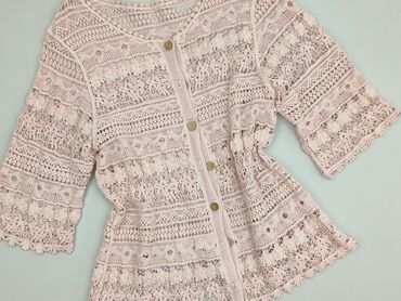 Sweterek/kardigan damski w kolorze jasnego pudrowego różu. - Krój: luźny, otwarty bez zapięcia; szerokie rękawy do łokcia/3/4; lekko dłuższy tył, ściągacz przy dole i przy krawędzi przodu. - Splot...