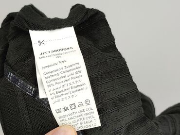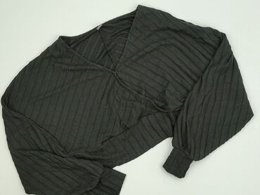 Czarny, półprzezroczysty krótki kardigan/bolerko z długim rękawem. - Tkanina: lekka siateczka z welurowym, błyszczącym wzorem liści/plashy (efekt 3D, połysk). - Krój: krótki, luźny, bez zapięcia...