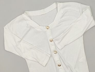 Biały kardigan damski DVS Casual, rozmiar L - Krój: przedłużany, z podkreśloną linią talii szerokim ściągaczem - Zapięcie: jeden guzik z przodu, głęboki dekolt w serek z prążkowaną lamówką - Rękaw...