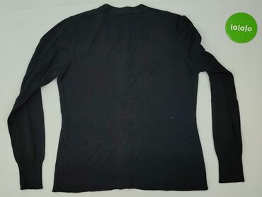 Miękka, lekka dzianina odpowiednia na cały rok; dobrze łączy się zarówno z jeansami, jak i spódnicą czy sukienką. Dla kobiety, rozmiar niepodany na metce (prośba o wymiary przed zakupem, jeśli potrzebne). Kolor: czarny. Bez nadruków, ozdobny detal w kolorze złotawym.