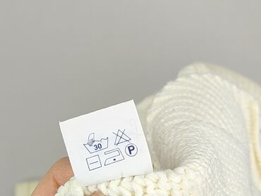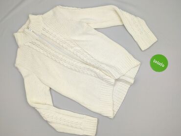 Kardigan damski w kolorze kremowym, wykonany z dzianiny. Charakteryzuje się dekoltem w kształcie litery V i zapięciem na guziki. Sweter posiada długie rękawy z ażurowymi wzorami, które nadają mu le...