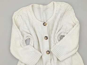 Biały kardigan damski z dzianiny - Klasyczny krój zapinany na guziki z przodu (5 guzików) - Dekolt w kształcie litery V z prążkowaną lamówką - Dwie naszywane kieszenie z przodu - Rękawy długie, za...Stan: