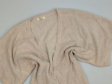 Beżowy kardigan damski, dzianinowy - Krój: dopasowany, prążkowany splot - Zapięcie: jeden duży guzik z przodu - Rękawy: długie - Dekolt: w kształcie litery V - Długość: do bioder/krótszy kardigan ...