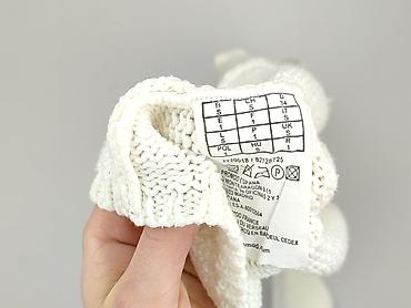 - Materiał: 100% akryl (miękka, średnio-gęsta dzianina); metka z zaleceniem delikatnego prania z podobnymi kolorami
