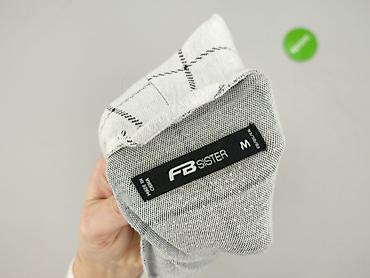 Dodatkowe informacje widoczne na metce: FB Sister, rozmiar M, made in China. Kolor bazowy: jasnoszary. Wzór kratki czarnej/ciemnoszarej.