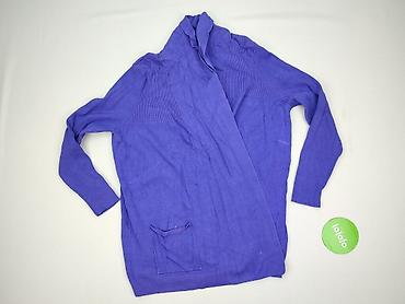 Fioletowy długi kardigan damski Leins - Model: bez zapięcia, z wydłużonymi, postrzępionymi końcówkami z przodu do efektownego wiązania lub swobodnego puszczenia - Rękaw: długi - Rozmiar z metki: M...Stan: