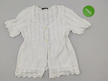 - Krój: krótki kardigan zapinany na 3 guziki, z wiązaniem w talii; rozszerzany dół