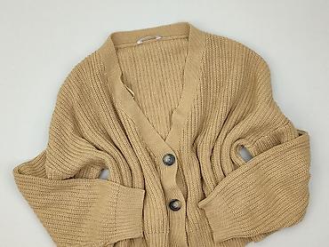 Damski kardigan bez zapięcia - Kolor: beżowy/piaskowy - Fason: otwarty, z szeroką, miękko układającą się listwą przy przodzie - Rękaw: długi - Długość: do bioder - Materiał: dzianina bawełniana z ...Stan: