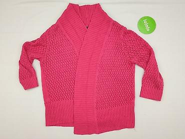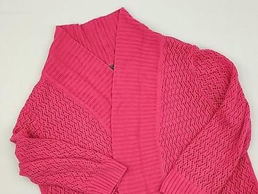 Różowy kardigan damski, rozmiar S - Krój: długi, bez zapięcia (otwarty przód) - Kolor: pudrowy róż - Materiał: cienka, przewiewna dzianina o luźnym splocie - Rękawy: długie, zakończone ściągaczami...