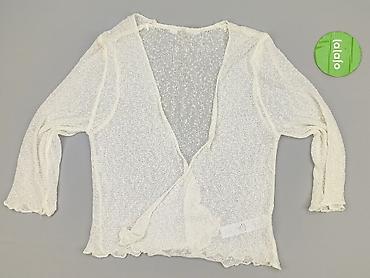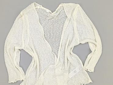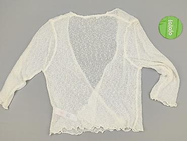 Ażurowy kardigan damski w kolorze śmietanowej bieli. - Fason: lekki, bez zapięcia, długi rękaw. - Tył oraz górne partie przodu z prześwitującej siateczki zdobionej haftowanymi kwiatkami 3D. - Przó...Stan: