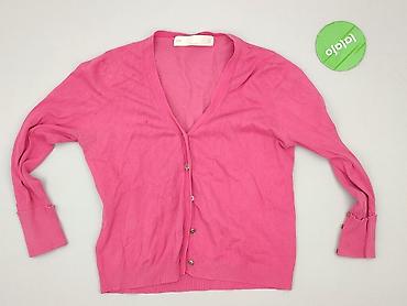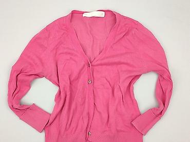 Różowy kardigan damski na guziki - Rozmiar: S (z metki) - Krój: sweter kardigan zapinany na 5 guzików - Rękaw: długi, raglanowy, z szerokimi ściągaczami - Dekolt: okrągły - Splot: grubszy, prążkow...