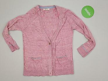 Różowy kardigan damski, rozmiar S - Lekki, miękki dzianinowy materiał o melanżowej strukturze (róż z jasnymi przetarciami). - Fason otwarty bez zapięcia, długie rękawy. - Długość za biodra, luźno ...