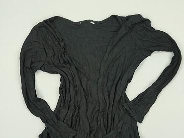 Czarny, lekki kardigan damski bez zapięcia. - Krój: długi, otwarty przód, rękawy długie, miękko układające się marszczenia. - Materiał: 95% wiskoza, 5% elastan – tkanina cienka, elastyczna i przew...
