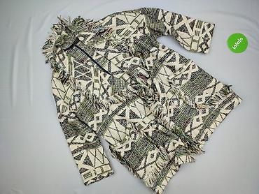 - Detale: obfite frędzle przy kołnierzu, przodach i na dole; dłuższy krój zakrywający biodra; długie rękawy