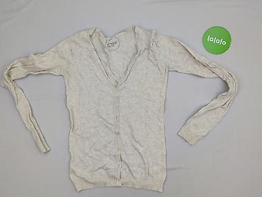 Szary kardigan damski MyHollis, rozmiar S. - Krój: klasyczny kardigan zapinany na guziki - Dekolt: w kształcie litery V - Rękawy: długie - Wykończenie: ściągacze przy mankietach i u dołu - Detal: ...Stan: