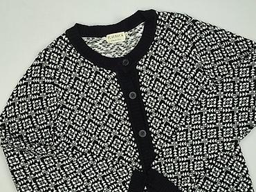 Kardigan damski PARAMOUR, rozmiar L - Fason: długi kardigan zapinany na suwak na całej długości - Kolorystyka: czarno‑kremowa - Wzór: geometryczny/etno + poziome pasy, dekoracyjna, lekko „włochata...