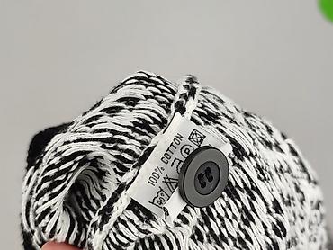 - Wzór: czarno-biały, gęsty geometryczny jacquard na całej powierzchni