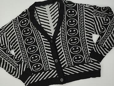 Damski kardigan na guziki, czarno‑szary, z efektownym żakardowym wzorem: