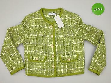 Kardigan damski – ciemnozielony - Krój: klasyczny, zapinany na guziki - Dekolt: w kształcie litery V - Rękawy: długie - Ściągacze: szeroki ściągacz u dołu i na mankietach - Materiał: cienka, dzian...