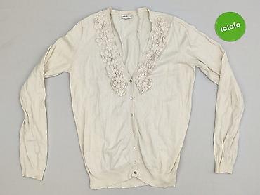 Kardigan damski Mango Suit - Kolor: kremowy/ecru - Rozmiar z metki: M (EUR/USA/MEX) - Fason: zapinany na guziki, dekolt w serek - Materiał: dzianina z przodu wykończona koronkowym panelem w kwiato...Stan: