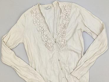 Sweter kardigan damski MANGO Basics - Model: lekki kardigan zapinany na guziki - Rozmiar z metki: S (EUR), USA S, MEX CH - Kolor: biało–beżowe poziome paski - Krój: dekolt w serek (V-neck), długi ...