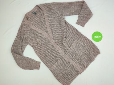 Kardigan damski Multiblu, rozmiar M - Fason: lekki kardigan z przodem układającym się w kształt litery V, przypominający kopertowe zapięcie (bez guzików/zamek). - Wzór i kolor: drobne granatowo-bi...