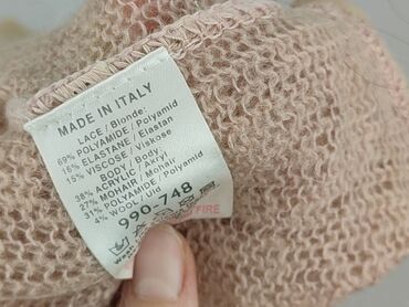 - Detale: efektowne falbany z koronki wzdłuż dekoltu i dołu; lekko prześwitująca, luźna dzianina