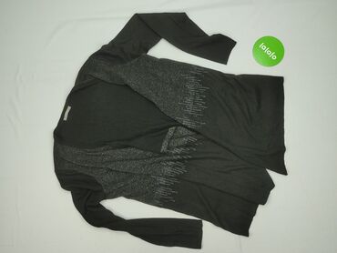 Szary kardigan Orsay – damski, rozmiar S. - Fason: dłuższy, bez zapięcia, z szeroką listwą przy dekolcie - Rękawy: długie - Dzianina: miękka, melanżowa przędza z subtelną, srebrzystą nitką nadając...