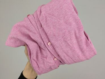 Ażurowa bluzka/kardigan damski - Kolor: pudrowy róż - Materiał: 100% bawełna (metka na zdjęciu) - Krój: zapinana na guziki z przodu - Rękaw: 3/4 z falbankową, koronkową końcówką - Długość: do biod...