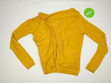 Bluzka damska z długim rękawem, musztardowa - Krój: dopasowany, prążkowana dzianina - Dekolt: okrągły (scoop neck) - Zapięcie: krótka listwa guzikowa z 5 guzikami z przodu - Rękaw: długi - Materia...