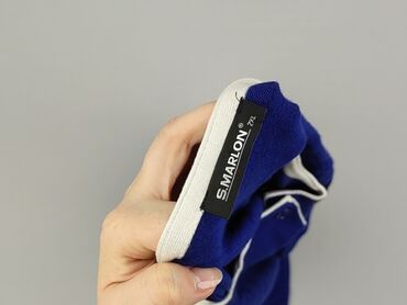 Granatowo-niebieski kardigan damski zapinany na guziki. - Materiał: 100% bawełna (metka wewnętrzna) - Fason: klasyczny sweterek na guziki, długość do bioder - Dekolt: w kształcie litery V z prążko...