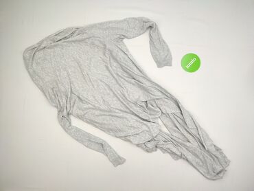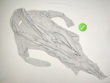 Długi, szary kardigan/bluza z kapturem bez zapięcia. - Fason: luźny, otwarty przód, wydłużony tył z rozcięciami po bokach - Kaptur obszerny - Rękawy długie - Kieszenie po bokach - Dekoracyjne brąz...