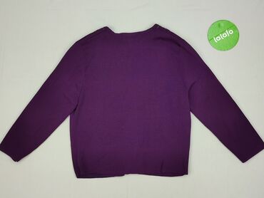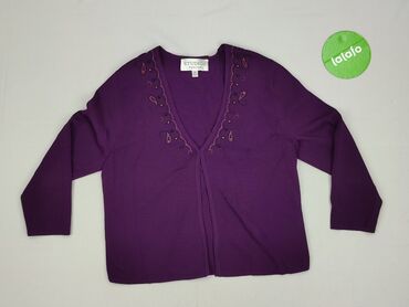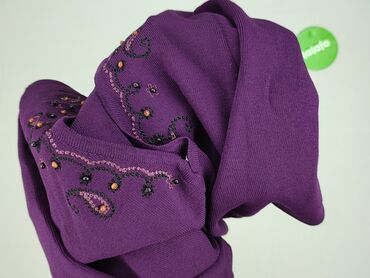 Fioletowy kardigan damski wykonany w 100% z akrylu. Charakteryzuje się unikalnymi, ozdobnymi aplikacjami na ramionach, które dodają mu elegancji. Długie rękawy i luźny krój zapewniają komfort nosze...Stan: