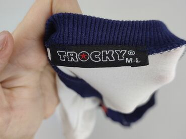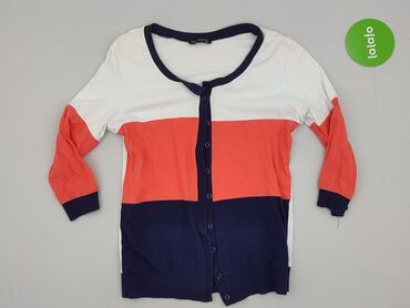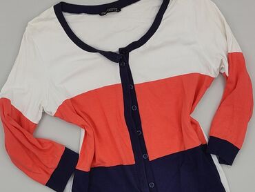 Kardigan damski TROCKY, rozmiar M–L - Fason: rozpinany na całej długości na guziki - Rękawy: 3/4 z szerokimi, prążkowanymi ściągaczami - Dekolt: okrągły, obszyty kontrastową lamówką - Kolorystyka:...