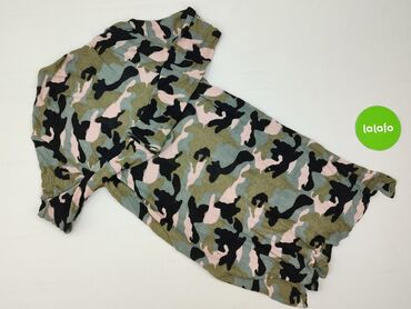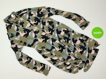 Kardigan damski w militarny wzór camo - Marka: Osh (etykieta na zdjęciu) - Rozmiar z metki: S - Krój: krótki kardigan zapinany na 4 guziki - Dekolt: głęboki V-neck - Kolorystyka: beże, oliwkowa zi...Stan: