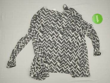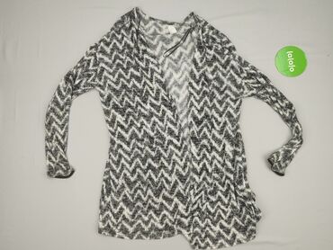 Kardigan damski o długim rękawie, charakteryzujący się wielokolorowym wzorem geometrycznym w odcieniach czerwieni, błękitu i czerni na kremowym tle. Dekolt w kształcie litery V z kremową lamówką do...