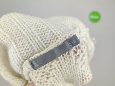 Kardigan damski, dzianinowy, w kolorze kremowej bieli. - Fason: rozpinany, głęboki dekolt V, zapinany na 3 duże, cieniowane guziki. - Rękawy: długie, zdobione wypukłymi supełkami/„bąbelkami” (stru...Stan: