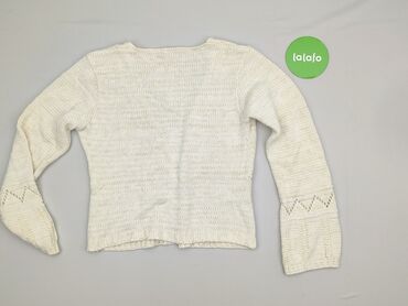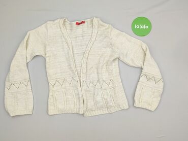 Kardigan damski, lekki, w kolorze ecru/śmietankowym. - Fason: klasyczny kardigan zapinany na 3 guziki - Dekolt: w serek (V-neck) - Rękaw: 3/4 z szerokim ściągaczem - Dół: ściągacz dla lepszego dop...