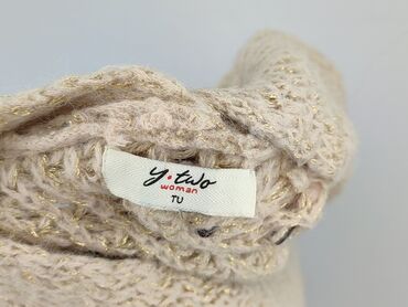 Beżowy kardigan damski z wełną - Fason: swobodny, bez zapięcia, z długim rękawem i szerokimi ściągaczami. Na mankietach po dwa dekoracyjne guziki. - Kolor: jasny beż/melange. - Materiał: 70% akryl...Kardigan damski Y.two woman, rozmiar TU (one size).