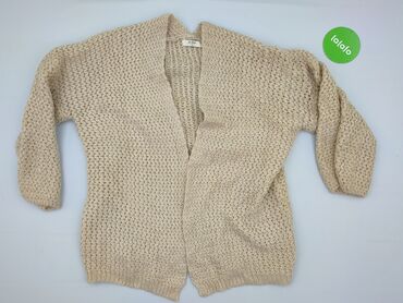 Damski kardigan bez zapięcia w kolorze beżowym. - Fason: długi, lekko oversize, otwarty przód bez guzików/zamek - Dzianina: delikatna, cienka; przód z wstawkami o grubszym, ażurowym splocie - Ręka...